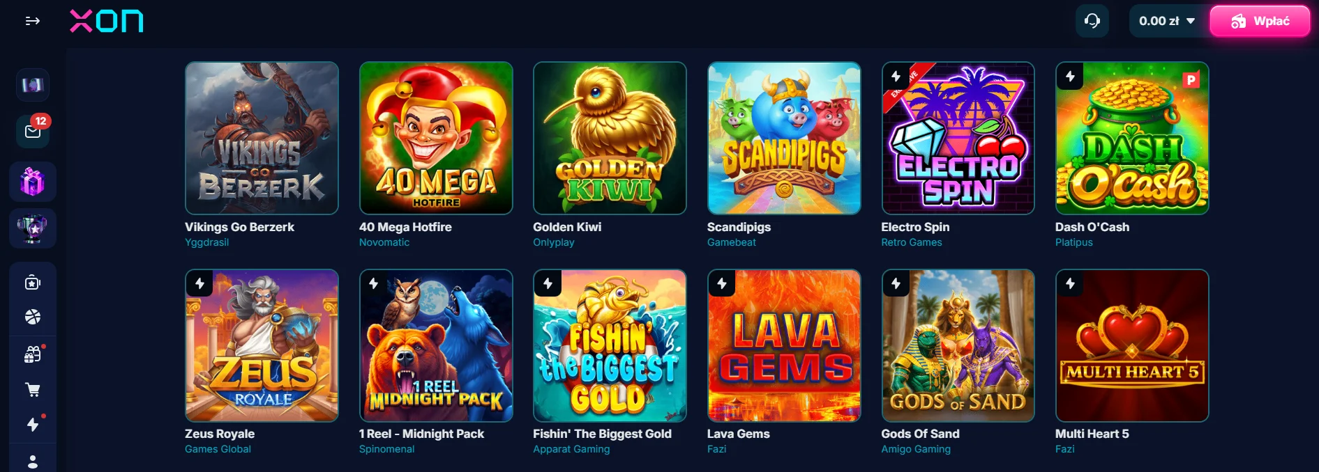 - Asortyment gier: sloty, jackpoty, kasyno na żywo, gry stołowe